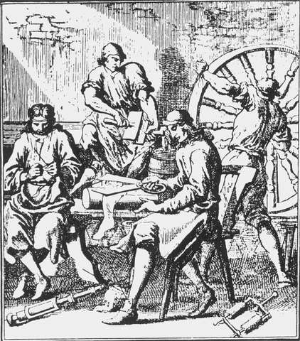 A módosabb urak, persze, nem szorultak rá, hogy szakmát tanuljanak, és általa pénzt keressenek, így háztartásaikban valóban női passzió lett a kötés. Az említett férfiak csupán hallgatták esténként a kandallóban ropogó tűz és feleségeik kötőtűinek csattogó hangját. Ezek a neszek valakit bizonyára megnyugtatnak, mást meg idegesítenek. Utóbbi tábort erősítette a legenda szerint William Lee, akinek bosszúsága egy technikai újításhoz vezetett. 1589-ben az akkori szövőgépek átalakításával gépesítette a kötést. A fejlesztésben rejlő anyagi haszon lehetőségét felismerve pedig el is rohant I. Erzsébethez, hogy az áldását kérje. A királynő elutasította, így Lee Franciaországba ment, és ott látott munkához. A fennmaradt iratok szerint harisnyákat kezdett gyártani üzemében.